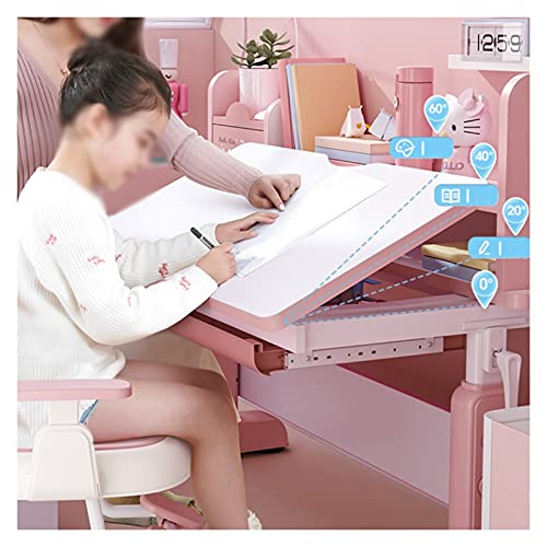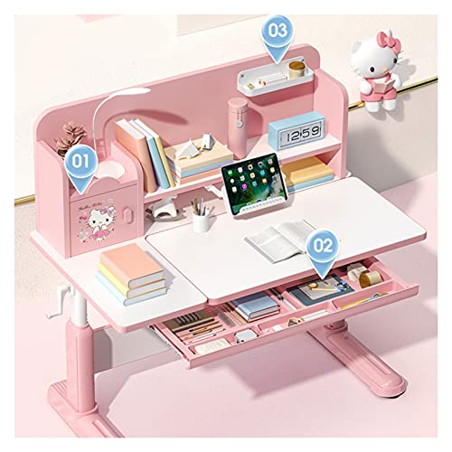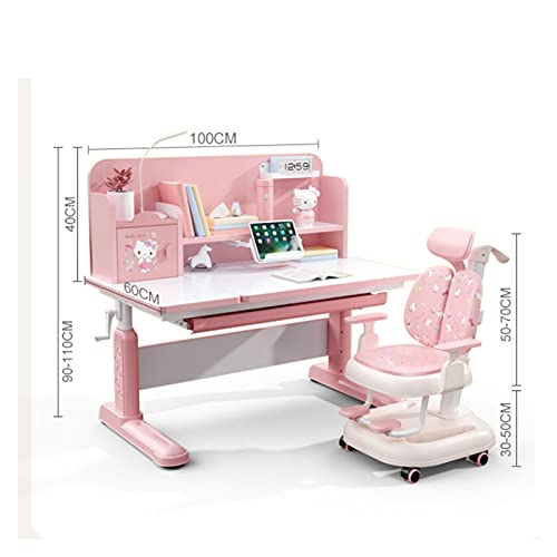 Bureau met plank Kinderstudietafel kan worden verhoogd en verlaagd massief hout bureau basisschool student bureau thuis schrijfbureau en stoel set studeerbureau witte computer bureau (Color : Pink)