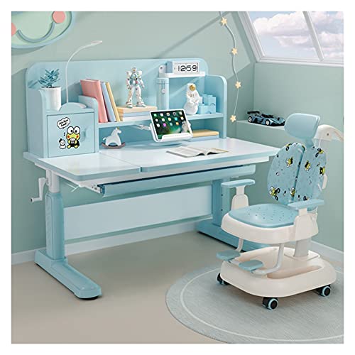Specificaties: Bureau met plank Kinderstudietafel kan worden verhoogd en verlaagd massief hout bureau basisschool student bureau thuis schrijfbureau en stoel set studeerbureau witte computer bureau (Color : Pink)
