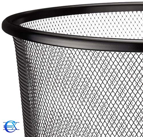 EUROXANTY® Papier prullenbak | Ronde papierenbak | Metalen gaas bak | Stevige metalen basis | Vuilnisbak kantoor | Zwart | (10 L)