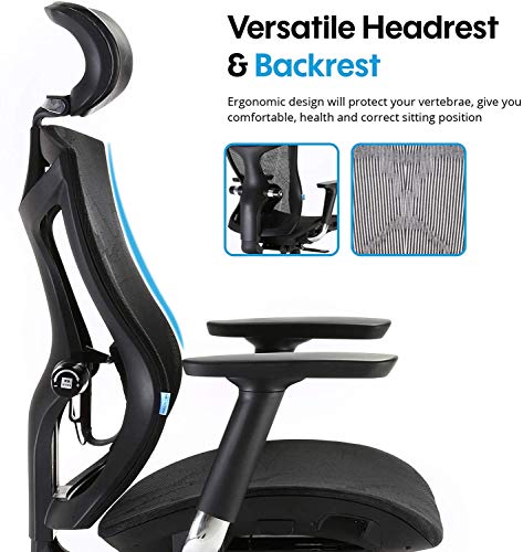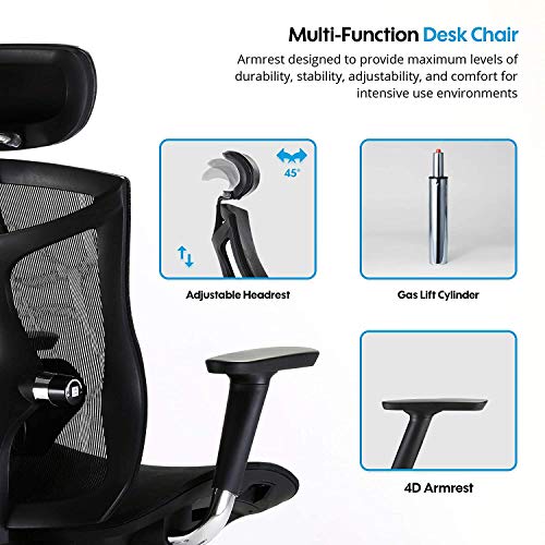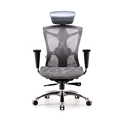 Specificaties: Evosetup V1 Ergonomische bureaustoel, met hoofdsteun, zitting en rugleuning, 4D-armleuningen en verstelbaar lendenwervelbereik, ademende netstof, bureaustoel (grijs)