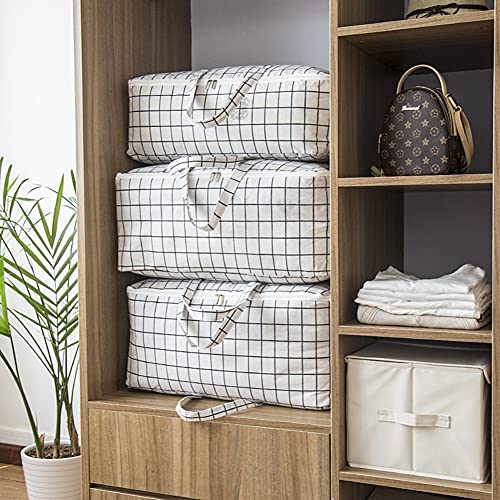 Grote opbergtas met versterkt handvat en rits wasbare katoenen en linnen handtas geurloze opbergtas voor het opbergen van dekens kleding quilts etc.