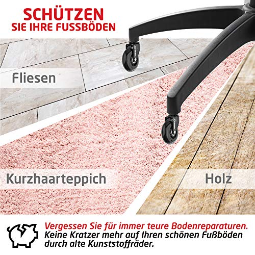 Specificaties: Rebel Set van 5 wieltjes voor harde vloeren, voor bureaustoel, wielen, bureaustoel en gamingstoel, zwenkwielen, 11 x 22 mm, geschikt voor de meeste draaistoelframes