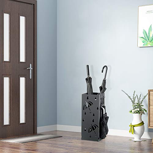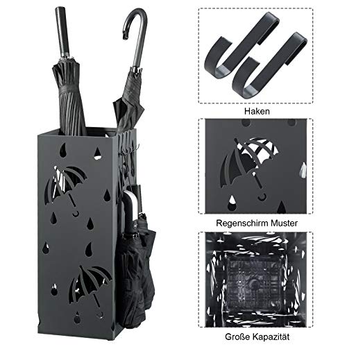 Specificaties: WOLTU paraplubak van ijzer, paraplubak met wateropvangbak, 4 haken voor zakparaplu’s, L20 x B20 x H49cm, antraciet rechthoek SST02an