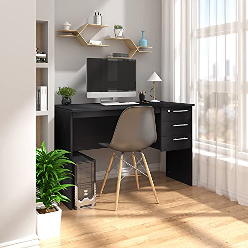 WOLTU TS59sz Computer table Desk 120x59x75cm in Chipboard,PC worktable Office table with 3 drawers and 1 lock,Black