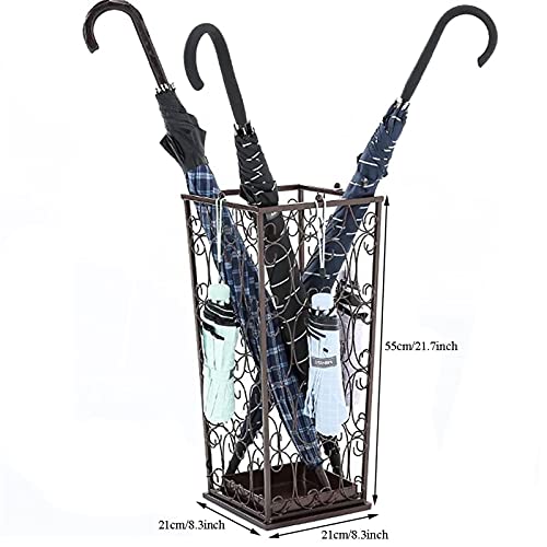 ZJYWMM Ruimtebesparende Organizer Metalen Paraplu Stand met haken, Paraplu Rack voor Huis/Restaurant, 8.3″ L × 8.3″ B × 21.7″ H (Kleur: BRONZE)