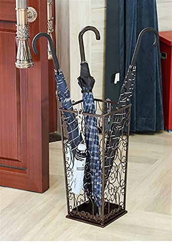 Specificaties: ZJYWMM Ruimtebesparende Organizer Metalen Paraplu Stand met haken, Paraplu Rack voor Huis/Restaurant, 8.3″ L × 8.3″ B × 21.7″ H (Kleur: BRONZE)